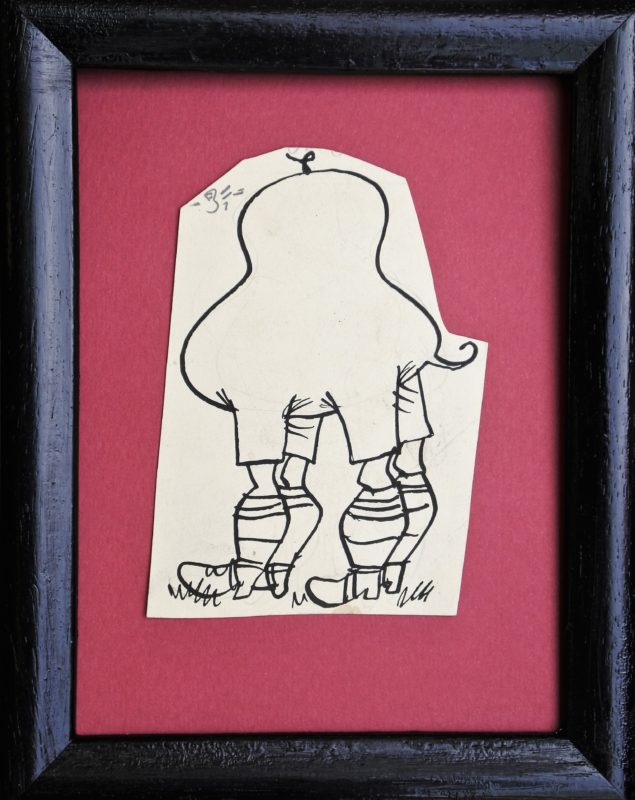 Lorenzo Goñi, Futbol a cuatro patas, dibujo tinta papel, enmarcado, dibujo 14×9 cms. y marco 23,50×18,50 cms.