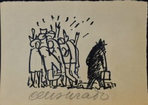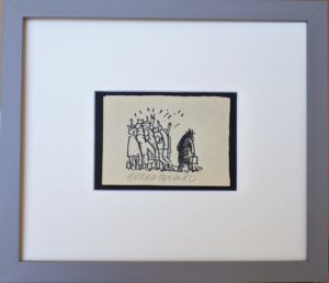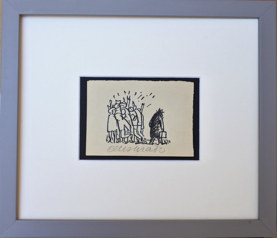 Lorenzo Goñi, Las verdaderas glorias, dibujo tinta papel, enmarcado, dibujo 9×12,50 cms. y marco 27,50×31,50 cms.