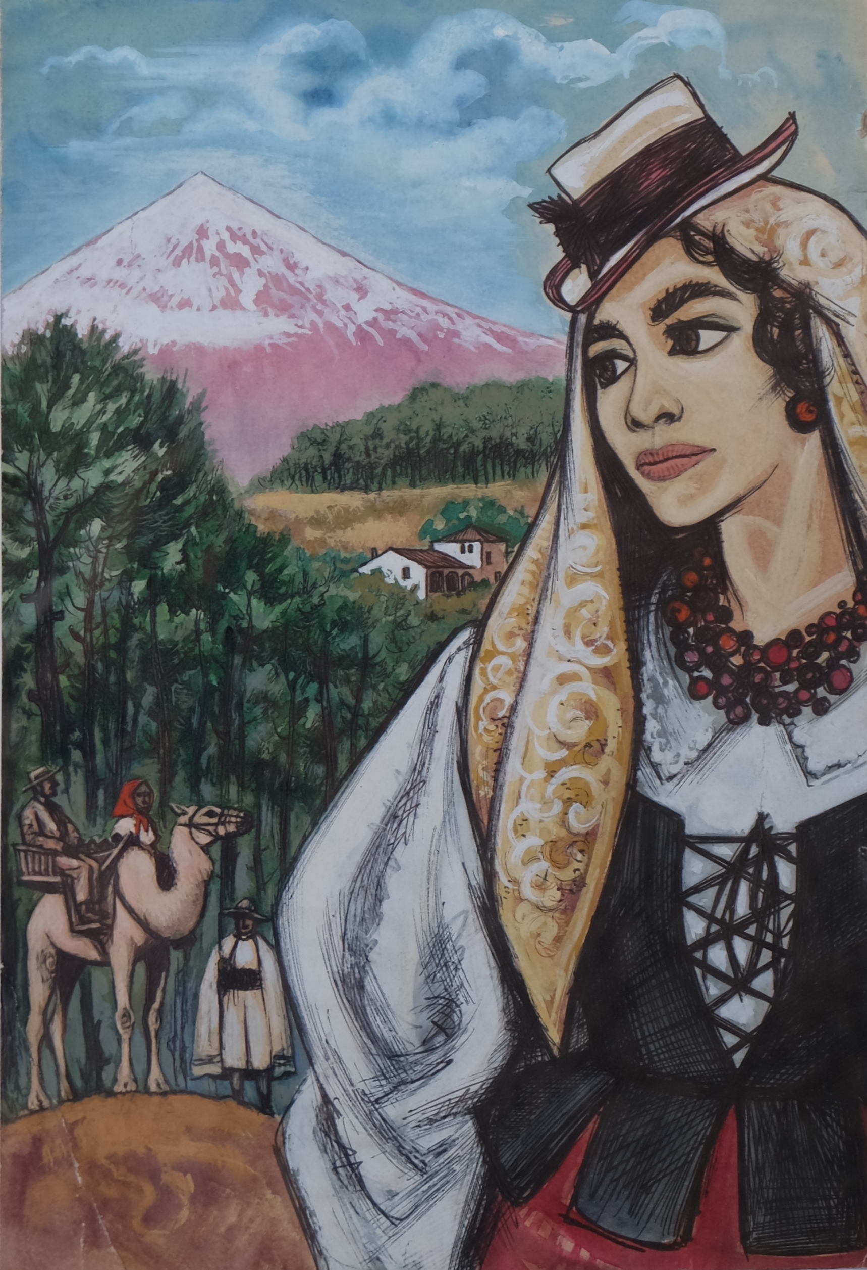 Lorenzo Goñi, Mujer Canaria, acuarela papel 32×21 cms. y marco 32×21 cms.