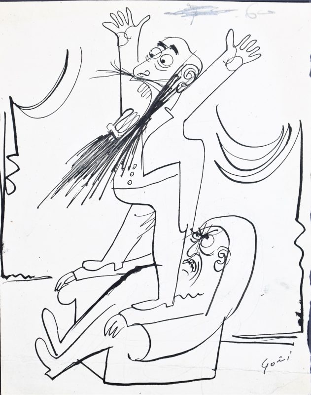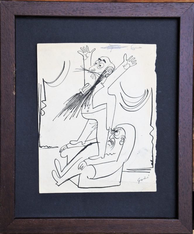 Lorenzo Goñi, Un barítono pesado, dibujo tinta papel, enmarcado, dibujo 20×17 cms. y marco 20×25 cms.