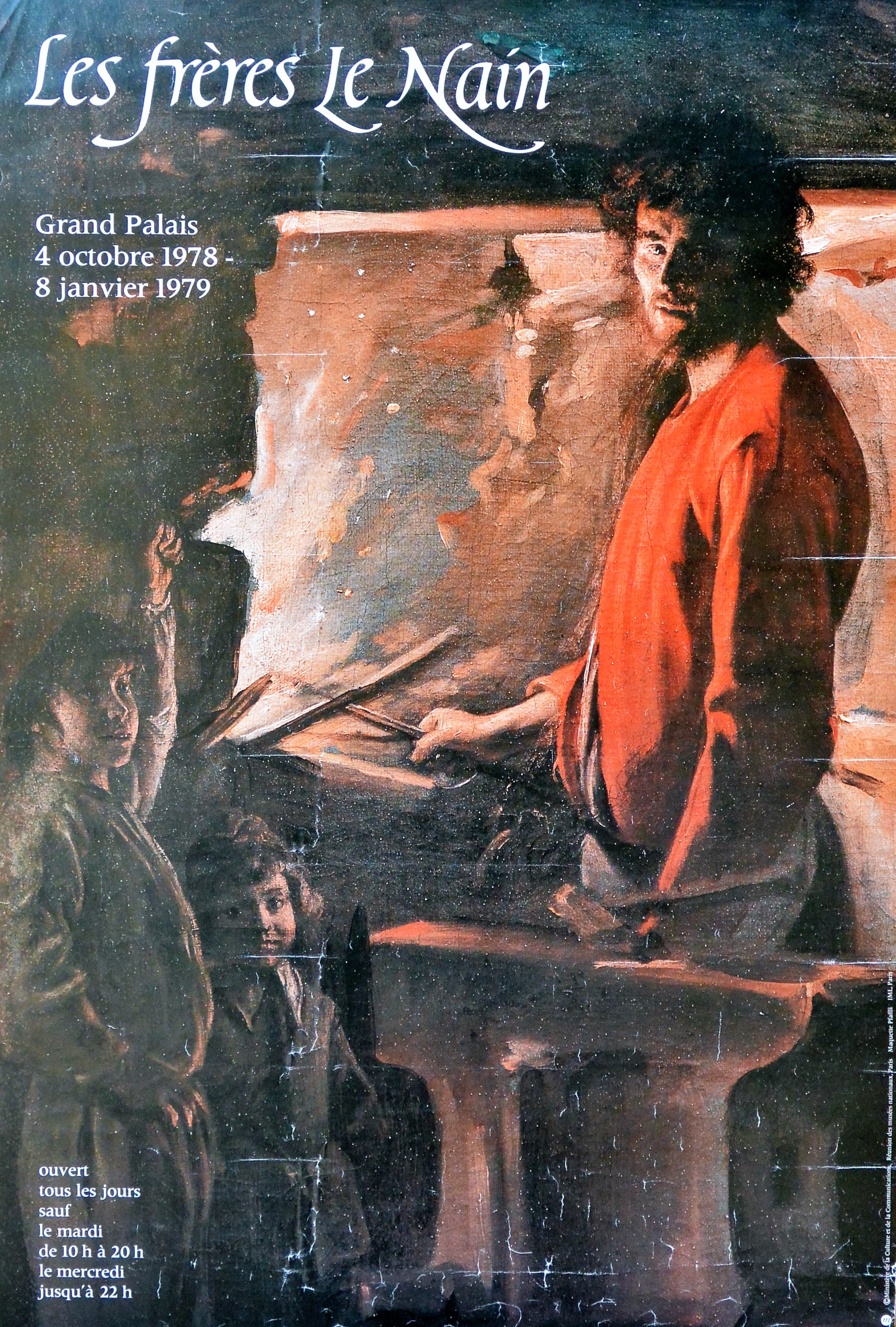 Louis Le Nain, La Forge, detail, cartel original exposición Les Freres Le Nain en Grand Palais Paris, 60×40 cms.