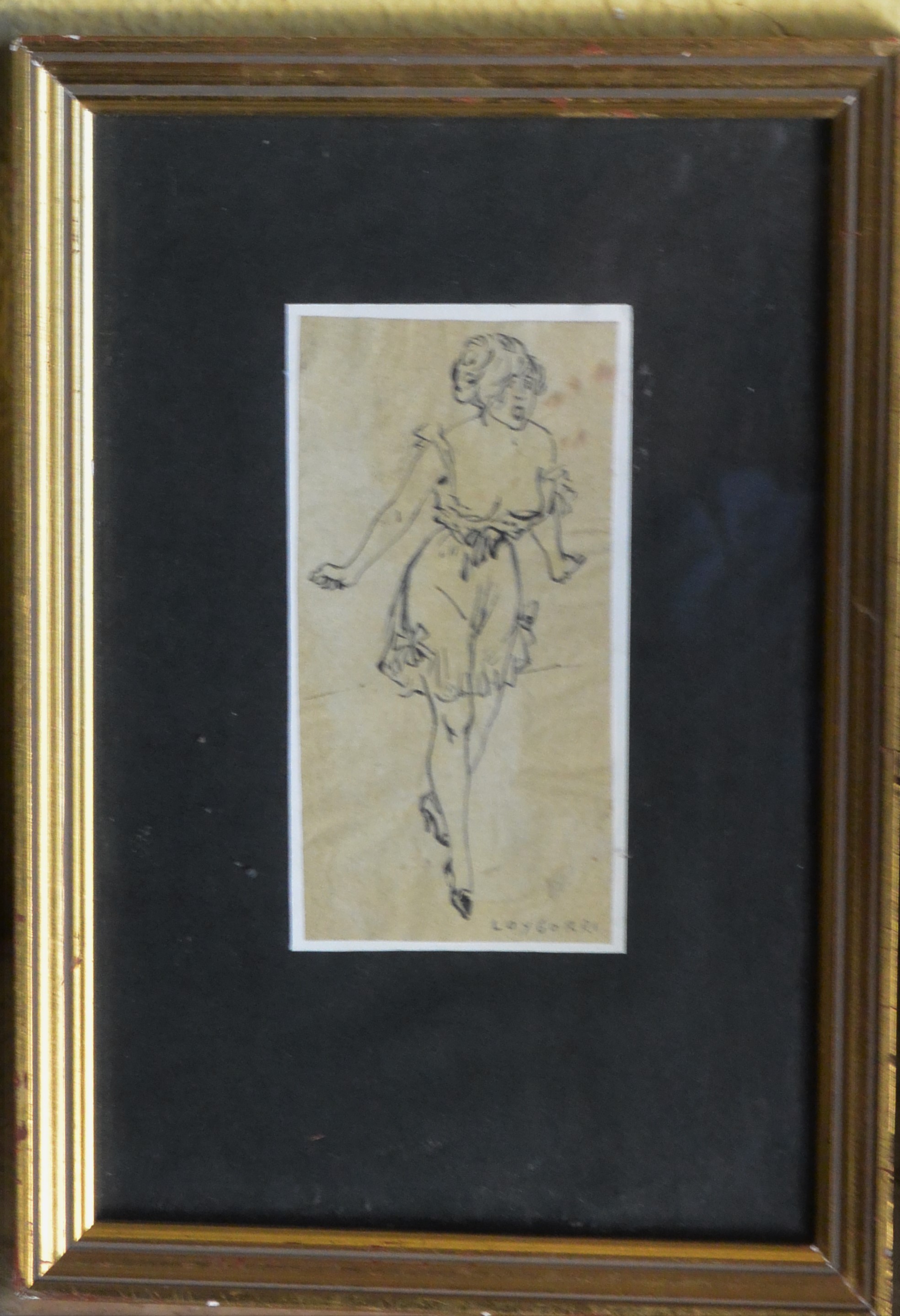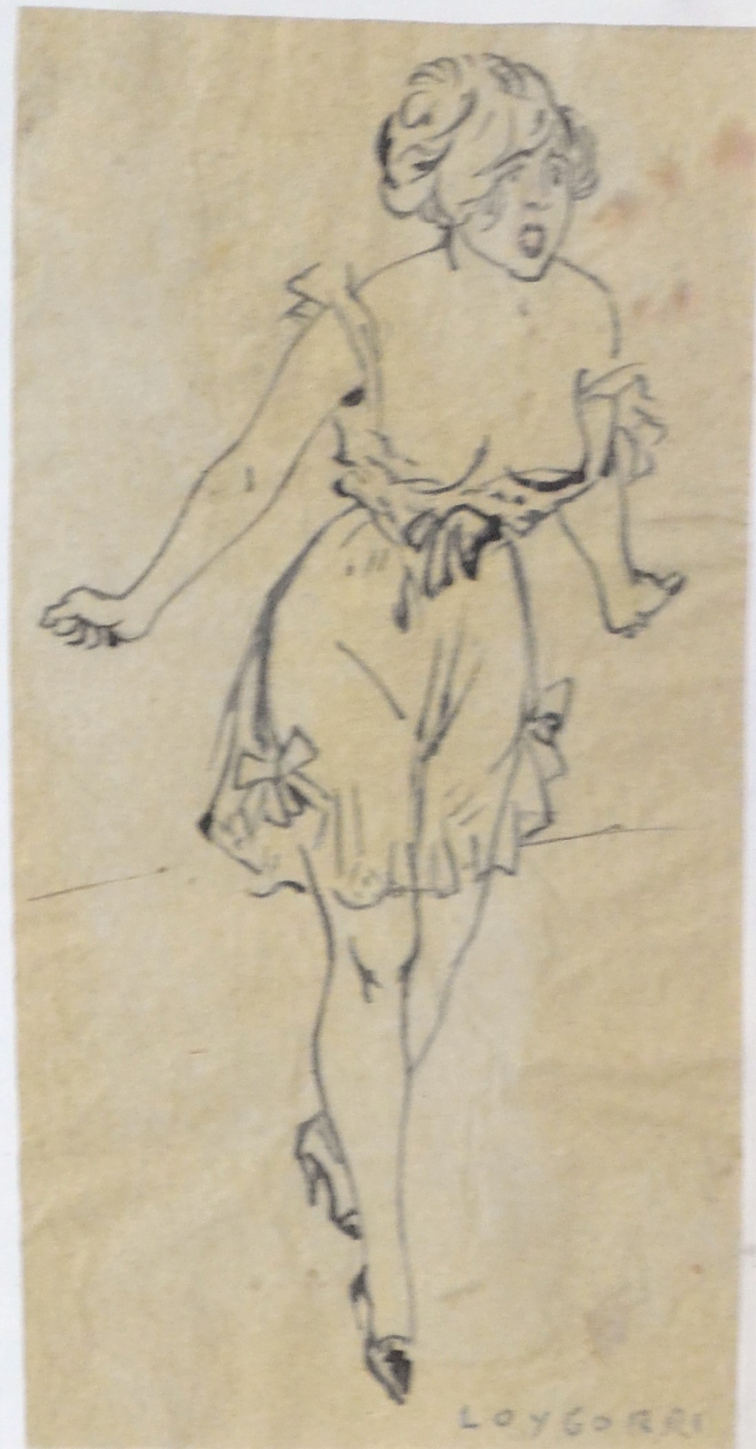 José Loygorri, Mujer airada, dibujo tinta papel enmarcado, dibujo 10,50×5,30 cms. y marco 22×15 cms. Marco incluido