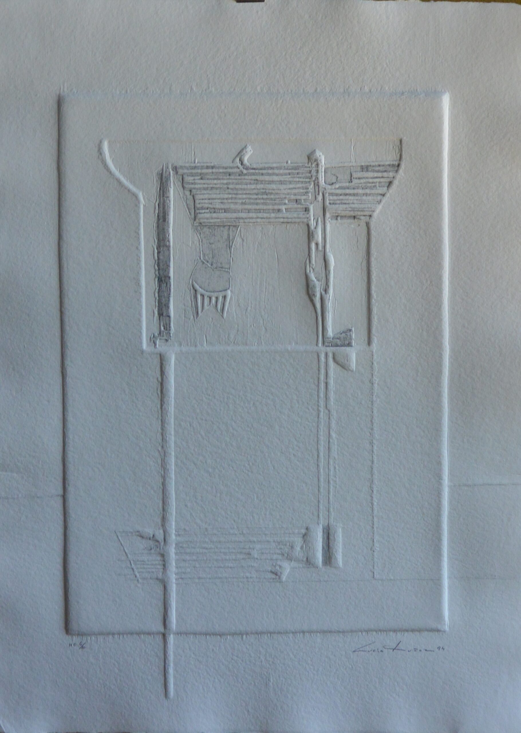 Lucio Muñoz, Composición, grabado papel artesanal, numerado hc 4/10 y firmado a lápiz en 1994, 76×57 cms.