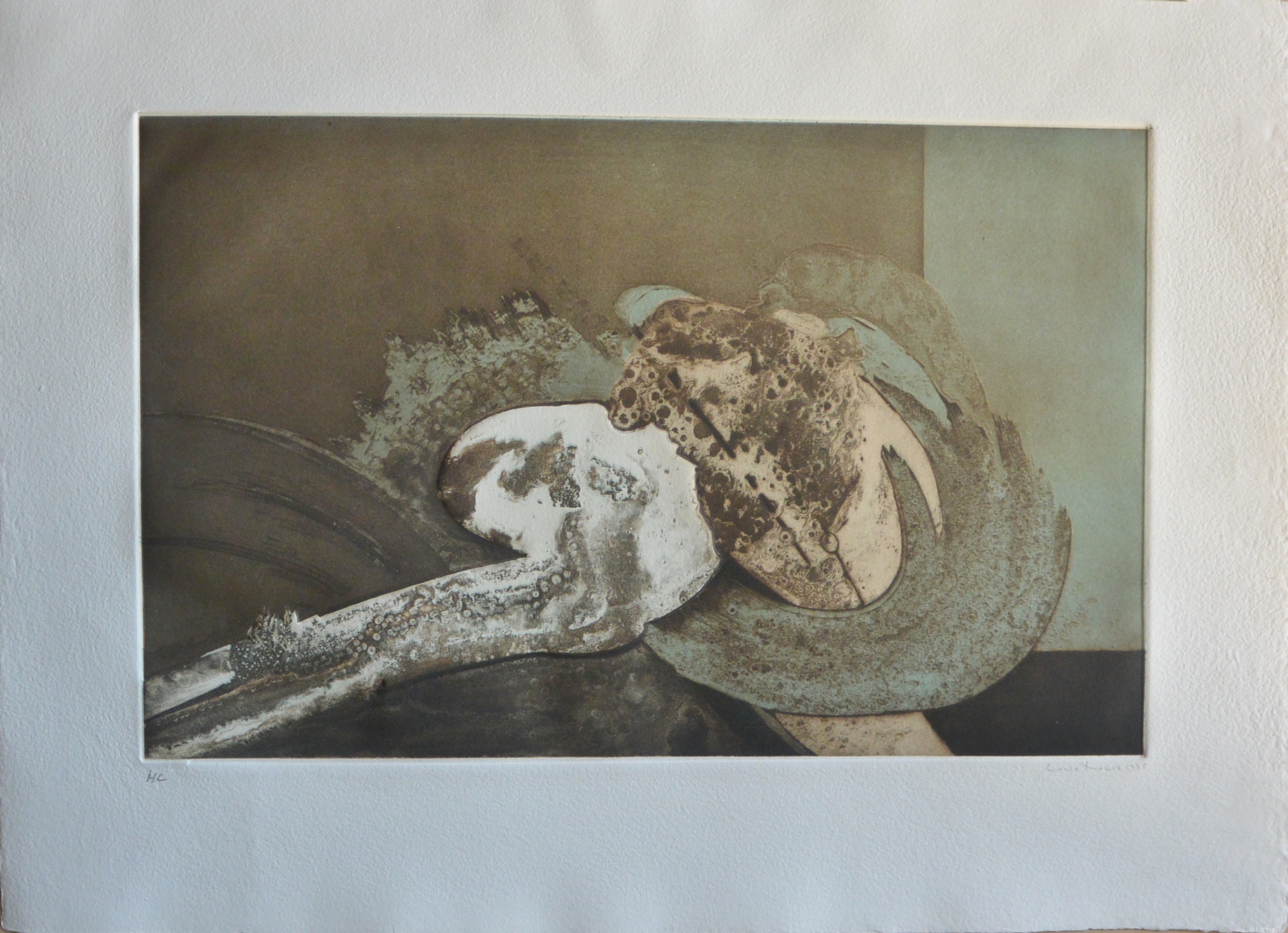 Lucio Muñoz, Composición LM III, grabado aguafuerte, edición 75 ejemplares, numerado hc y firmado a lápiz, papel 56×76 cms. y plancha 37×59 cms.