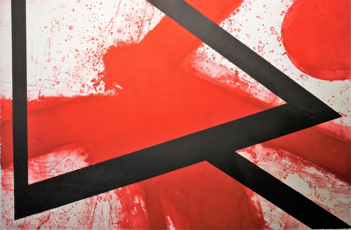 Luis Feito, Composición negro sobre rojo III, grabado aguafuerte y aguatinta, edición 30 ejemplares, numerado y firmado a lápiz, 80×120 cms.
