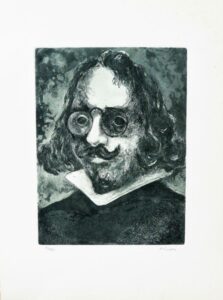 Luis Garcia Ochoa, Quevedo, grabado aguafuerte, edición 225 ejemplares, numerado y firmado a lápiz, 50×38 cms.