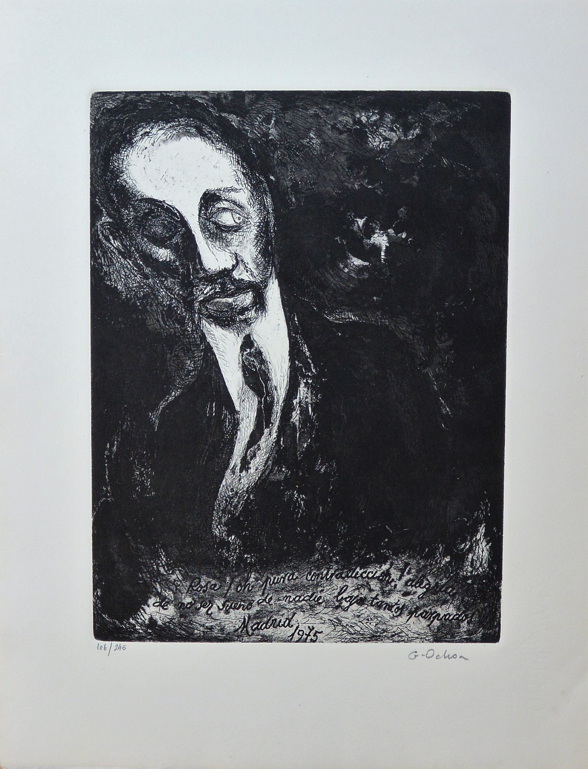 Luis García Ochoa, Rosa, oh pura contradicción…, grabado, edición 246 ejemplares, numerado y firmado a lápiz, huella 32×24 cms. y papel 46×35 cms.