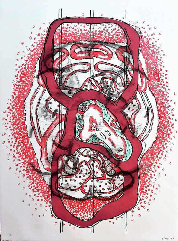 Luis Gordillo 1996, Celulario IX, Litografía, edición 30 ejemplares, numerado y firmado a lápiz, 76×56 cms.