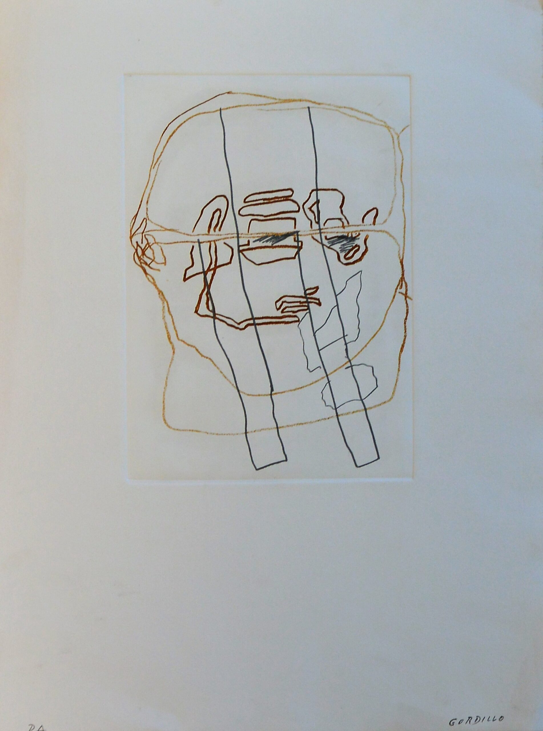Luis Gordillo, Cabeza de frente, grabado, numerado p.a. y firmado a lápiz, plancha 29×20,50 cms. y papel 54×40 cms.