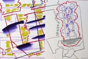Luis Gordillo, Composición S. T., litografía, edición 100 ejemplares, numerado y firmado a lápiz, 40×60 cms. editado por el 50º aniversario de la Fundación Juan March 2005