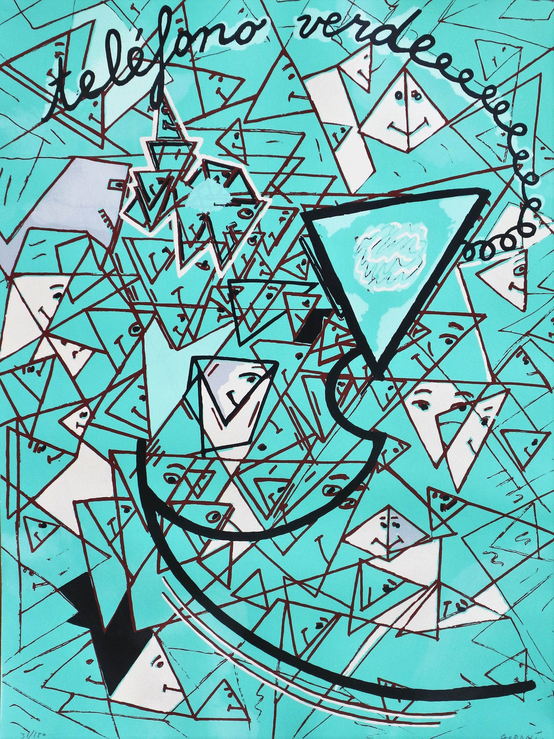 Luis Gordillo, Teléfono verde, serigrafia, edición 150 ejemplares, numerado y firmado a lápiz, 64×49 cms.