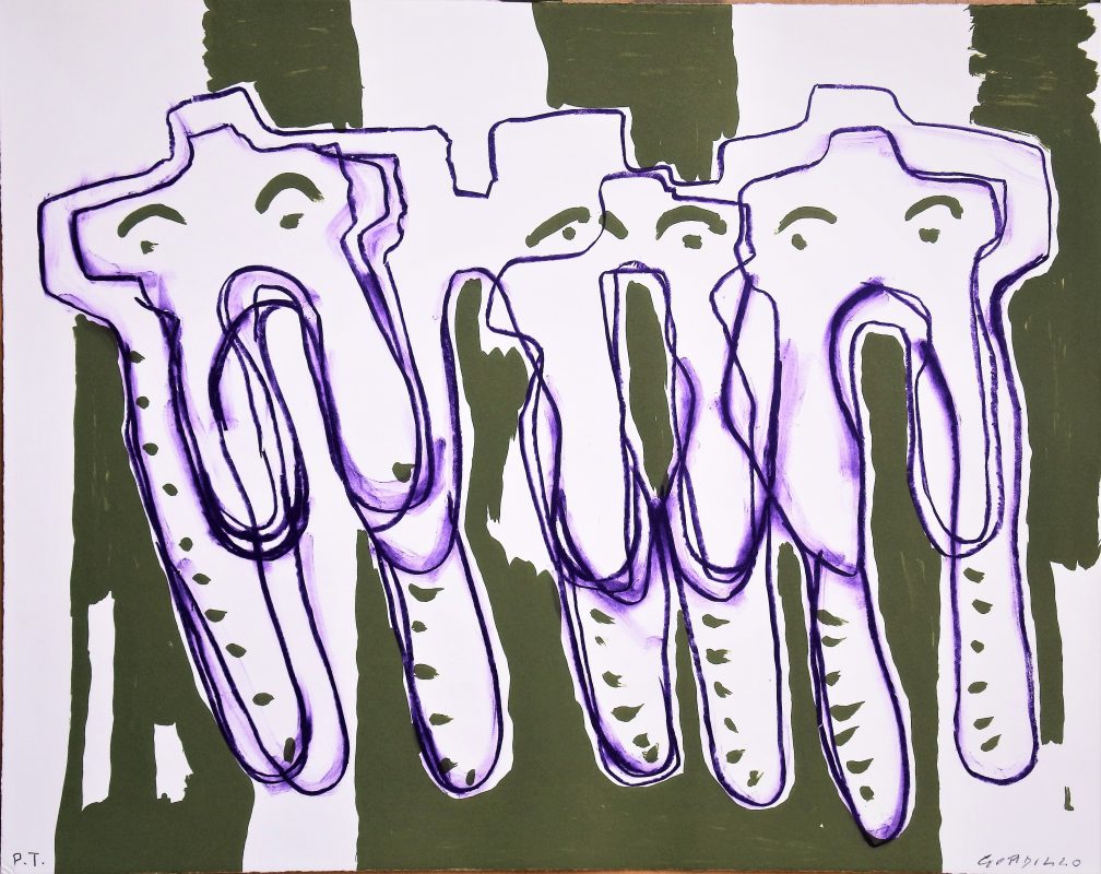 Luis Gordillo, Trio, litografía, edición 100 ejemplares, numerado p.t. y firmado a lápiz, 40×50,50 cms.