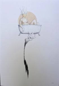 Luis V. Ortés, Afrodita en el baño, dibujo técnica mixta papel, enmarcado, dibujo 49×34 cms. y marco 60×46,50 cms.