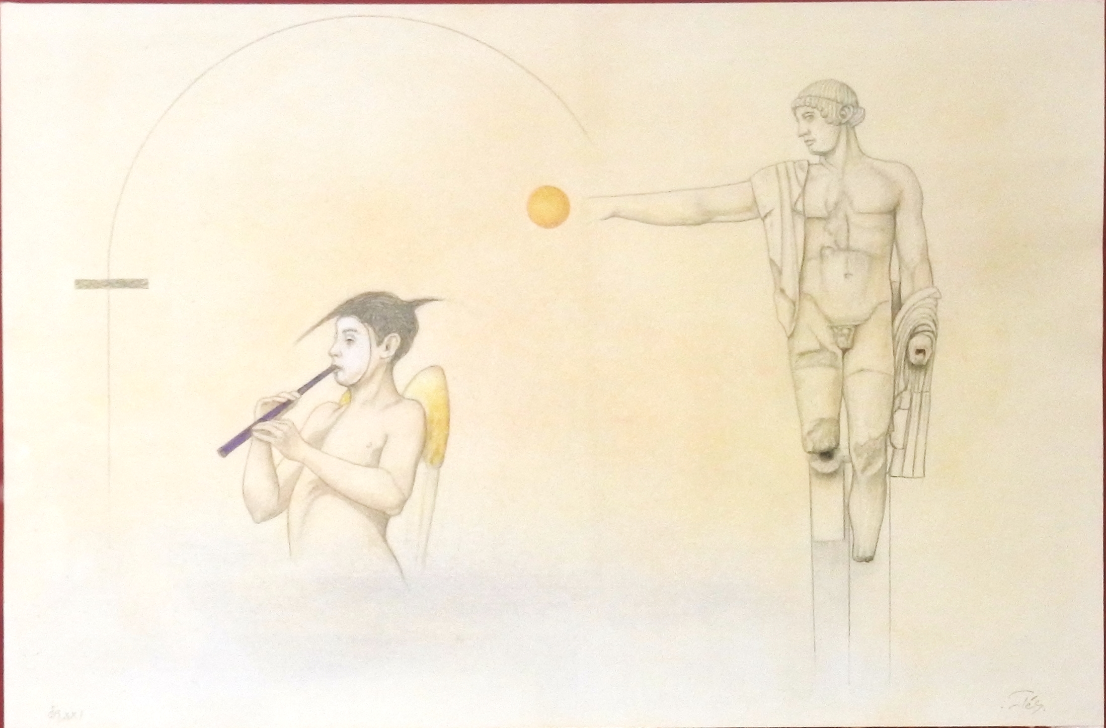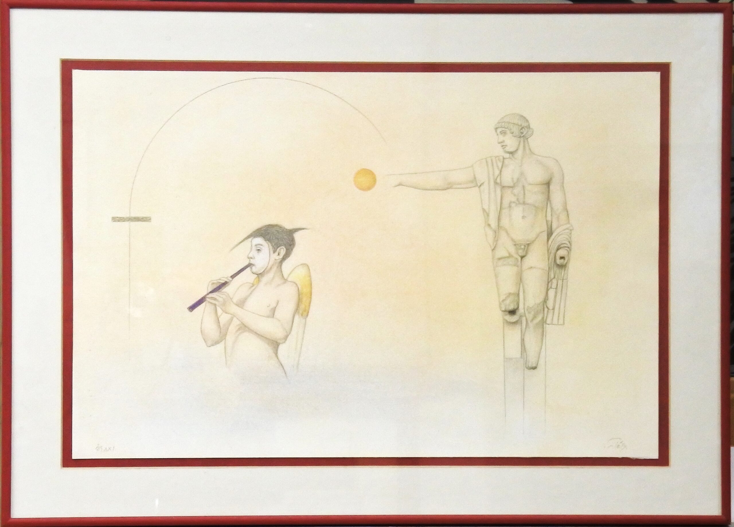 Luis V. Ortés, El Angel de Alejandría, dibujo original lápiz y acuarela sobre cartulina, enmarcado, dibujo 30×46 cms. y marco 40,50x 57 cms.