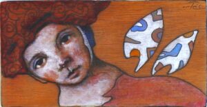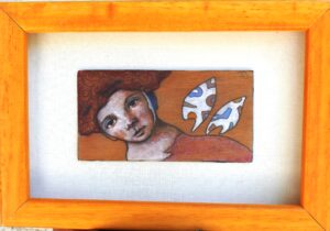 Luis V. Ortés, El discípulo, pintura original técnica mixta sobre tabla, enmarcado, pintura 8×15,50 cms. y marco 19,50×29 cms.