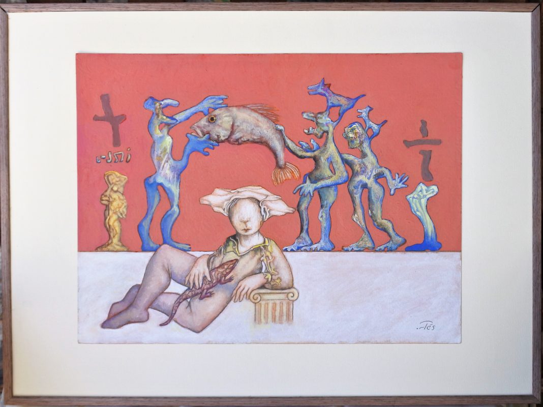 Luis V. Ortés, El oráculo de Delfos, dibujo técnica mixta cartulina, enmarcado, dibujo 25×33 cms. y marco 34×46 cms.