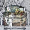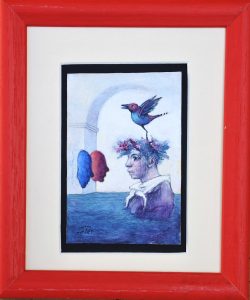 Luis V. Ortés, El sueño del poeta, pintura original técnica mixta sobre lienzo, enmarcado, pintura 13,50×9 cms. y marco 23,50×20 cms.