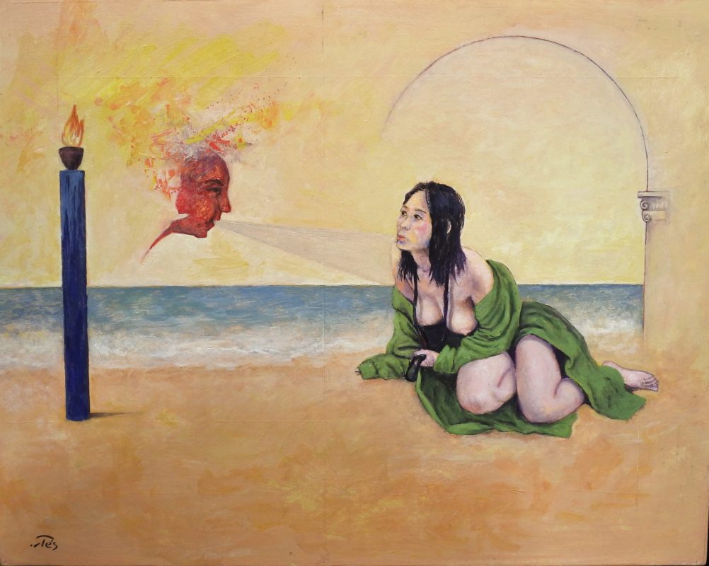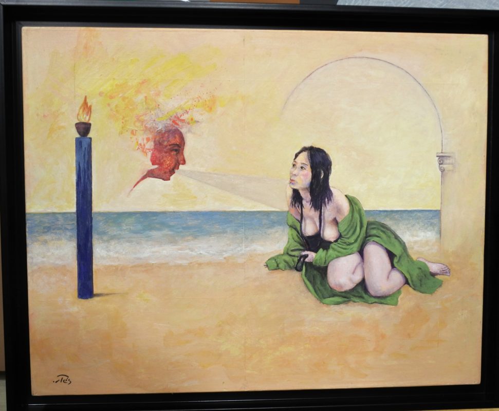 Luis V. Ortés, Eolo, pintura oleo sobre tablero dm, enmarcado, pintura 34,50×44 cms. y marco 39×48,50 cms.