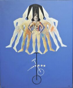 Luis V. Ortés, Equilibristas, pintura original oleo y acrílico sobre lienzo, 55×46 cms.