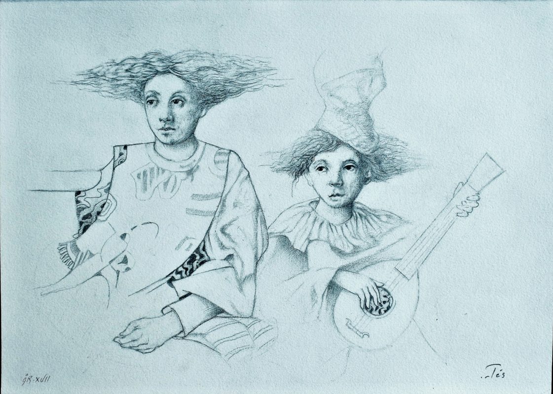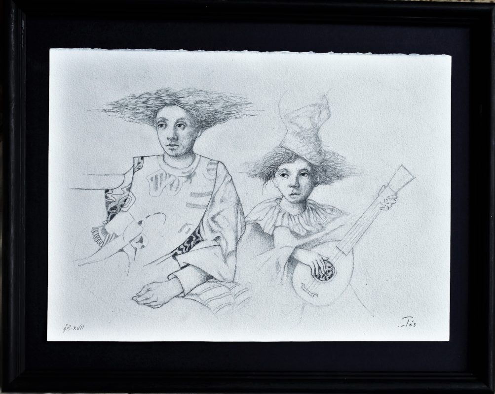 Luis V. Ortés, Esperando al nuncio, dibujo lápiz papel, enmarcado, dibujo 25×35 cms. y marco 34×42,50 cms.