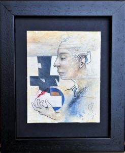 Luis V. Ortés, Gólgota II, dibujo técnica mixta y collage papel, enmarcado, dibujo 18×14,50 cms. y marco 29,50×24,50 cms.