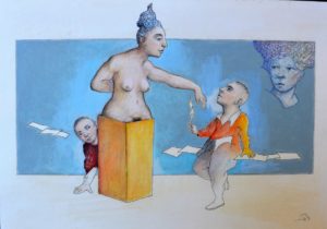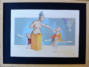 Luis V. Ortés, Il Geloso II, dibujo técnica mixta cartulina, enmarcado, dibujo, 26×37,50 cms. y marco 36,50×48,50 cms.