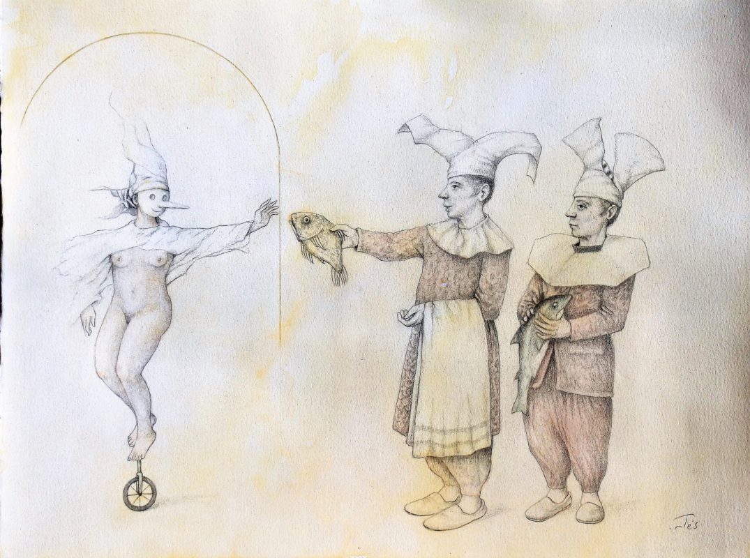 Luis V. Ortés – «La amante anónima» dibujo original lápiz y acuarela papel, enmarcado
