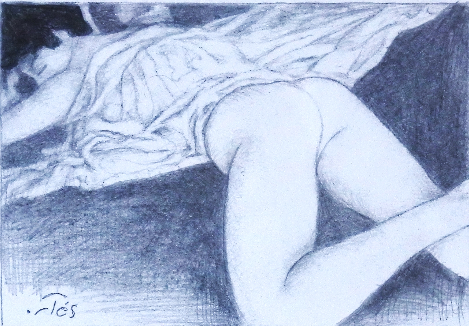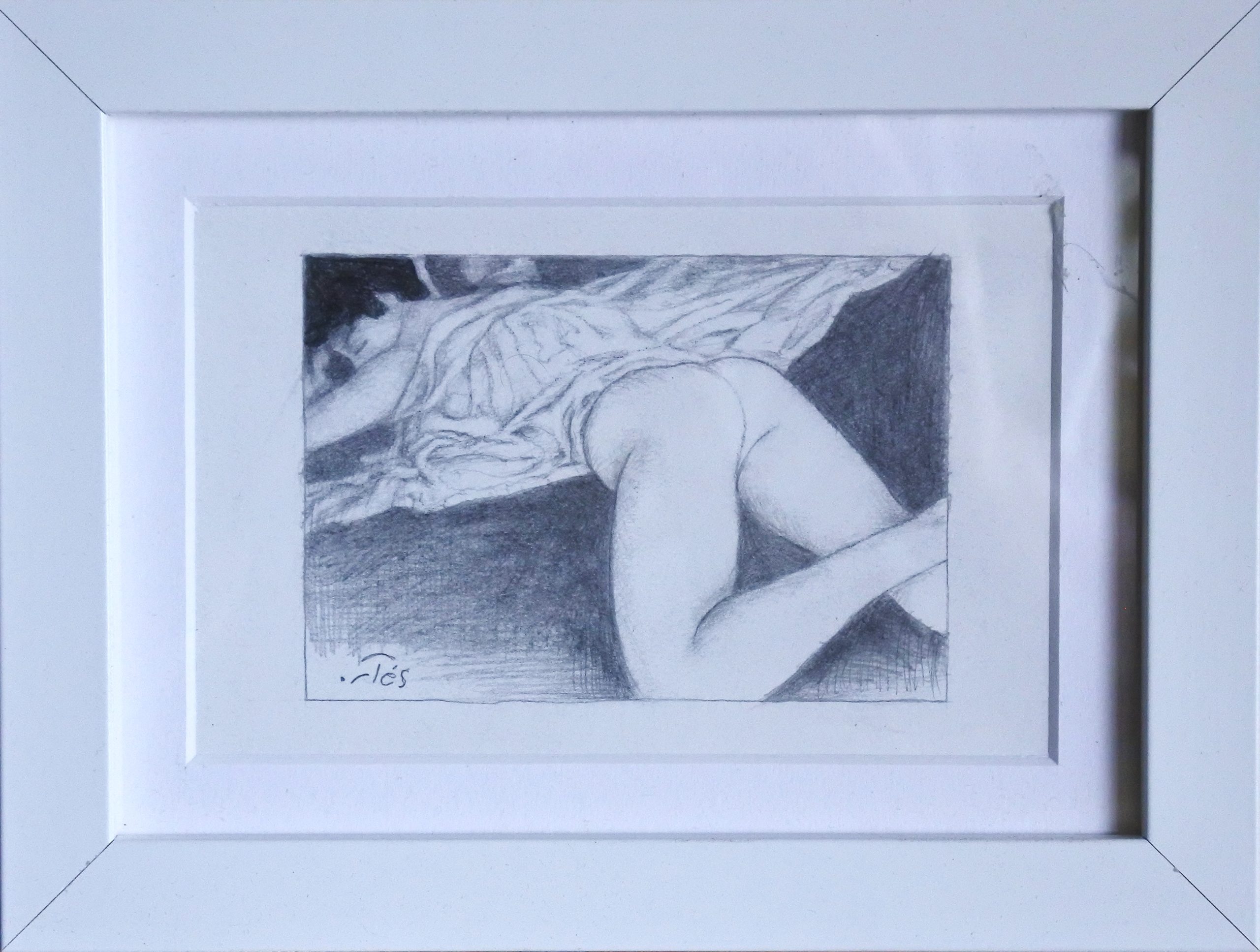Luis V. Ortés, La siesta, dibujo original lápiz sobre cartulina, enmarcado, dibujo 7,50×10,50 cms..y marco 15,50×20,50 cms.