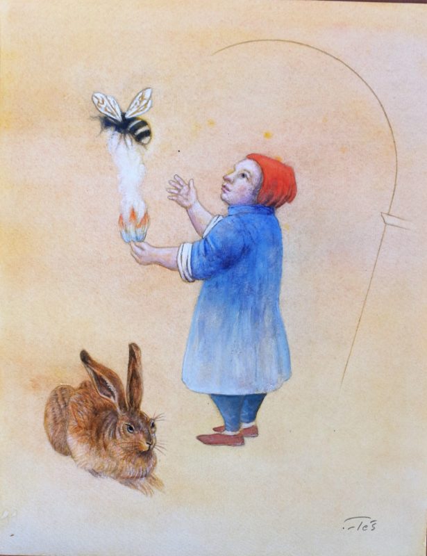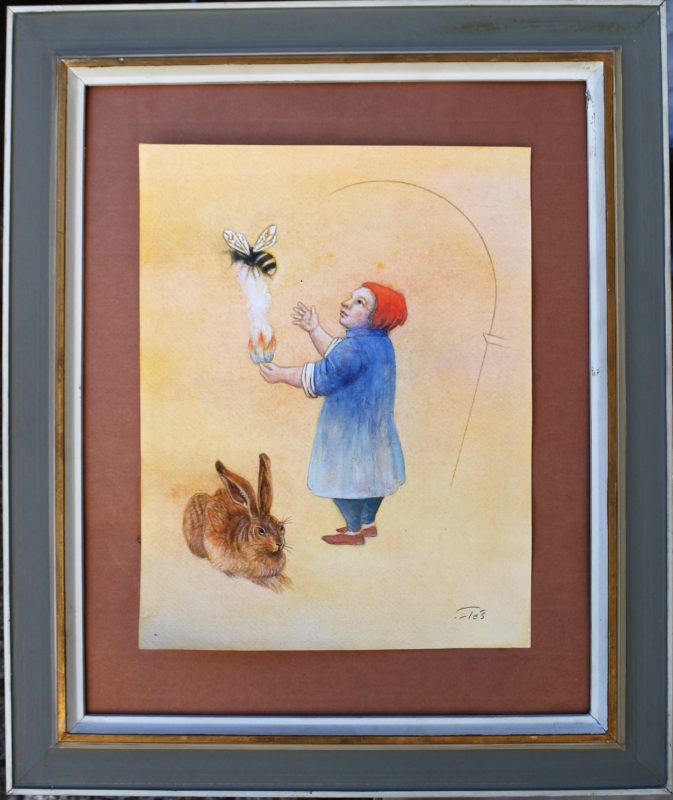 Luis V. Ortés, Pequeño apicultor, dibujo técnica mixta papel, enmarcado, dibujo 31×24 cms. y marco 50×42 cms.