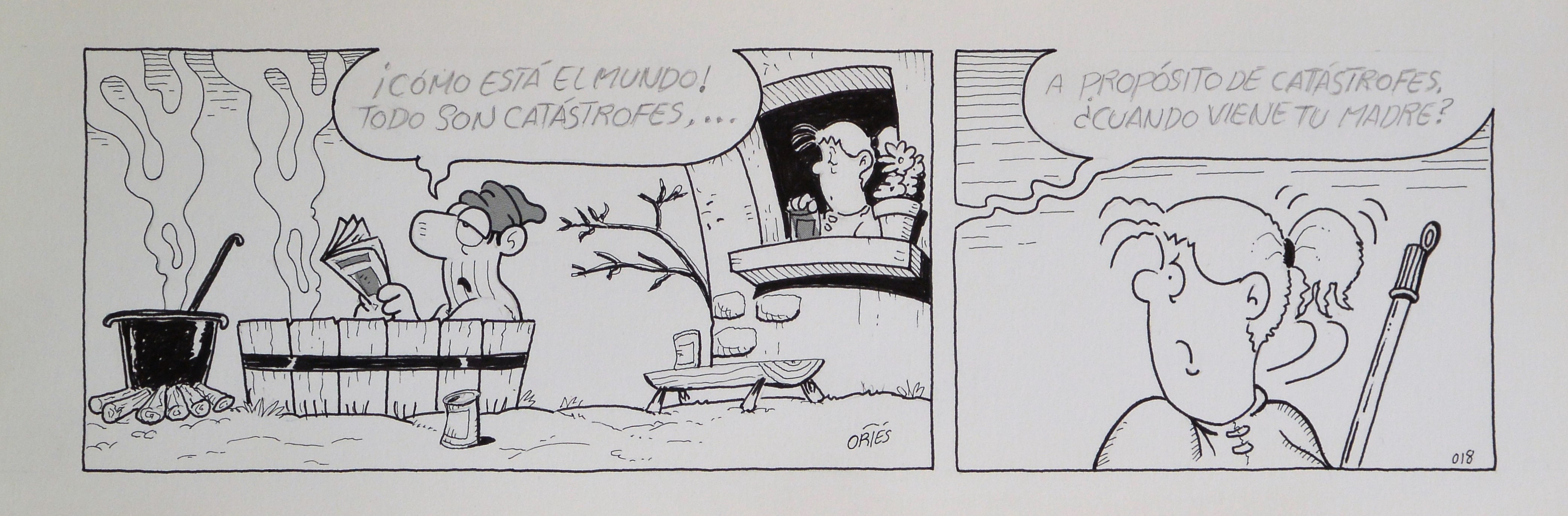Luis Valcarcel Ortés, Catástrofes, Viñetas, dibujo original tinta china cartulina, 11,50×34 cms.