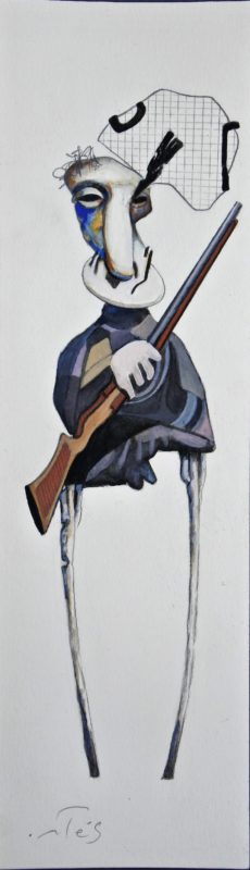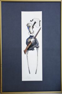 Luis Valcarcel Ortés, El Rey cazador, dibujo original técnica mixta papel, enmarcado, dibujo 35×10 cms. y marco 45×30 cms.