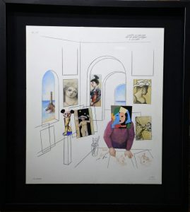 Luis Valcarcel Ortés, Il Pittore, técnica mixta y collage papel pegado a tabla, enmarcado, pintura 40×35 cms. y marco 52,50×47 cms.