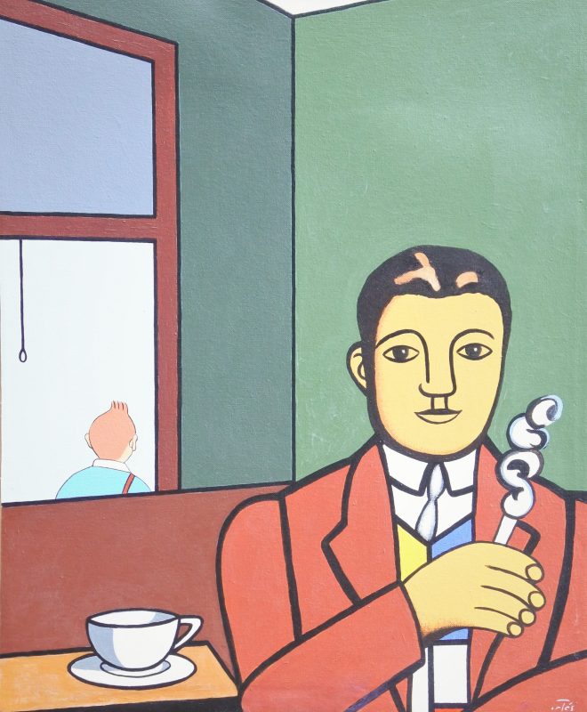 Luis Valcarcel Ortés, La Espera, pintura acrílico lienzo, enmarcado, pintura 55,60×46 cms. y marco 63,50×53,50 cms.