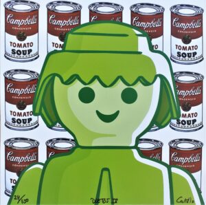 Ma. Jose Castillo, Duetos IV, Playmobil- Andy Warhol, serigrafia, edición 150 ejemplares, numerado y firmado por la artista, 40×40 cms.