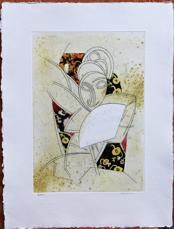 Manolo Valdés, El cubismo como pretexto III, grabado aguafuerte y collage, edición 100 ejemplares, numerado y firmado a lápiz, huella 45×32 cms. y papel 63×48 cms.