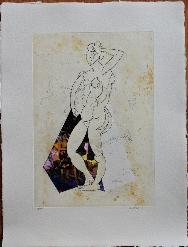 Manolo Valdés, El cubismo como pretexto VII, grabado aguafuerte y collage, huella 45×32 cms. y huella 63×48 cms.