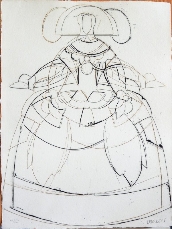 Manolo Valdés, Portfolio Meninas I, grabado aguafuerte, edición 100 ejemplares numerado y firmado a lápiz, 63×48 cms.