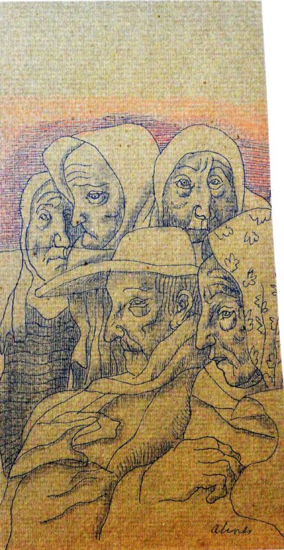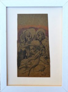 Manuel Alcorlo – «Abuelos» dibujo tinta papel, enmarcado