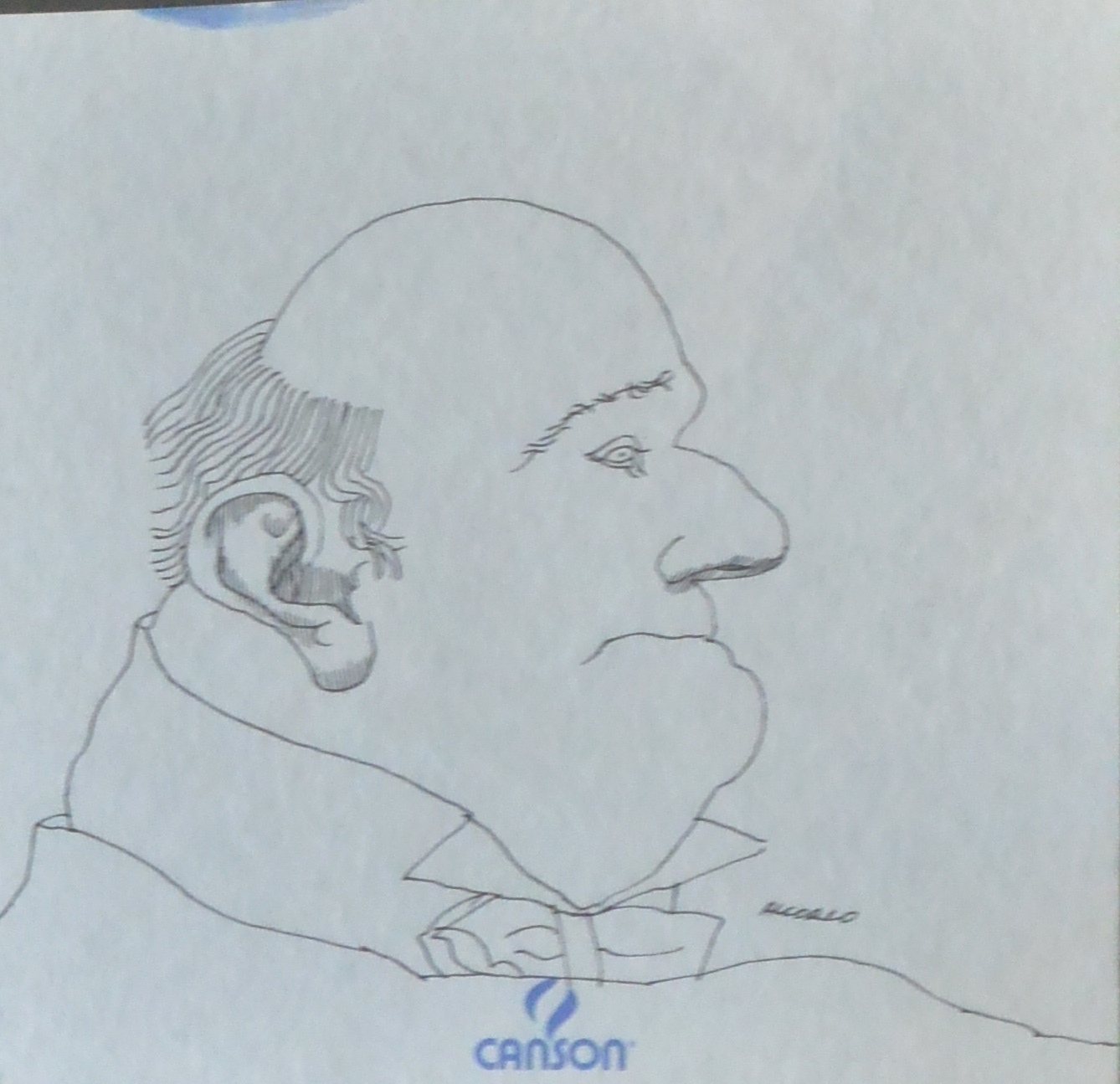Manuel Alcorlo, Cabeza hombre calvo de perfil, dibujo tinta papel, enmarcado, dibujo 14,50×14,50 cms. y marco 31×28 cms.