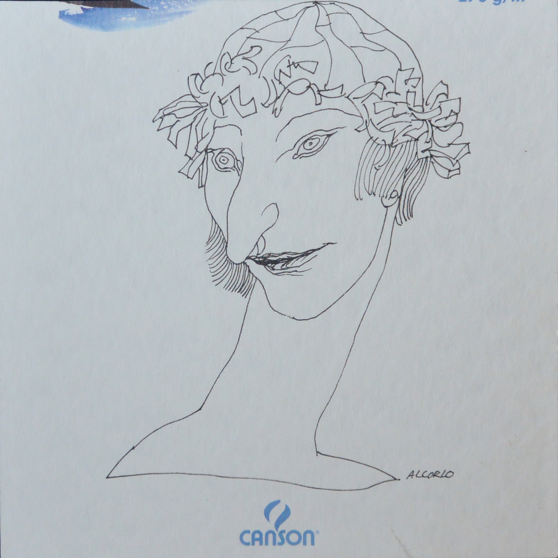 Manuel Alcorlo, Cabeza mujer cuello cisne, dibujo tinta china papel, enmarcado, dibujo 14,50×14,50 cms. y marco 25×23 cms.