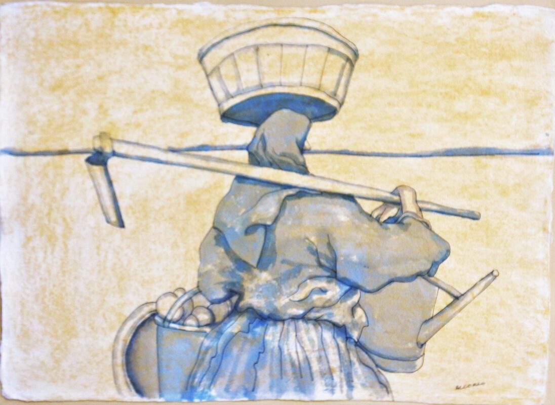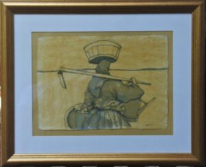Manuel Alcorlo, Campesina, dibujo original tinta y aguada papel, enmarcado, dibujo 26×36 cms. y marco 46×56 cms.