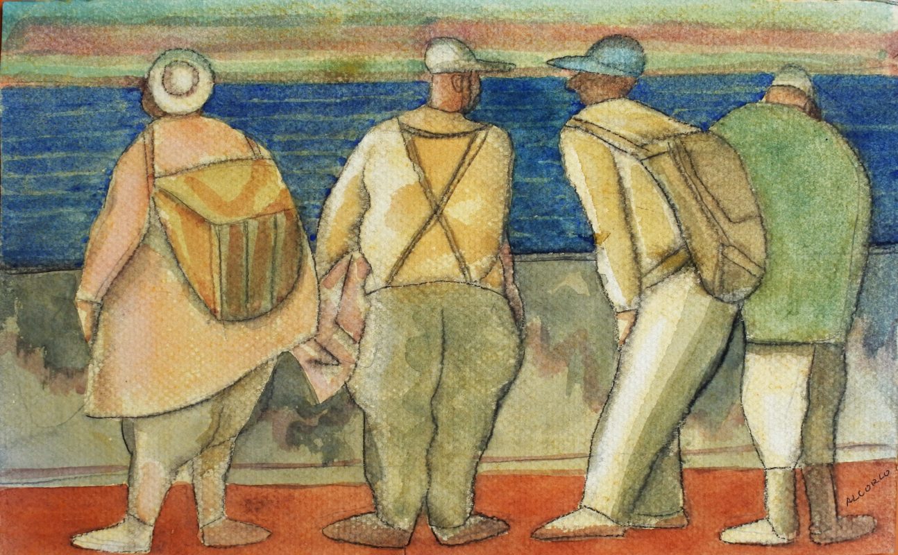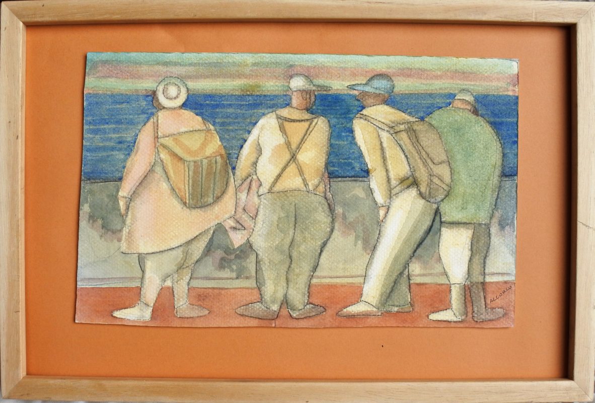 Manuel Alcorlo, Contemplando el canal, dibujo acuarela cartulina, enmarcado, dibujo 18×29 cms. y marco 26,50×40 cms.