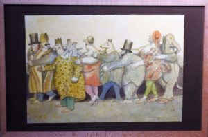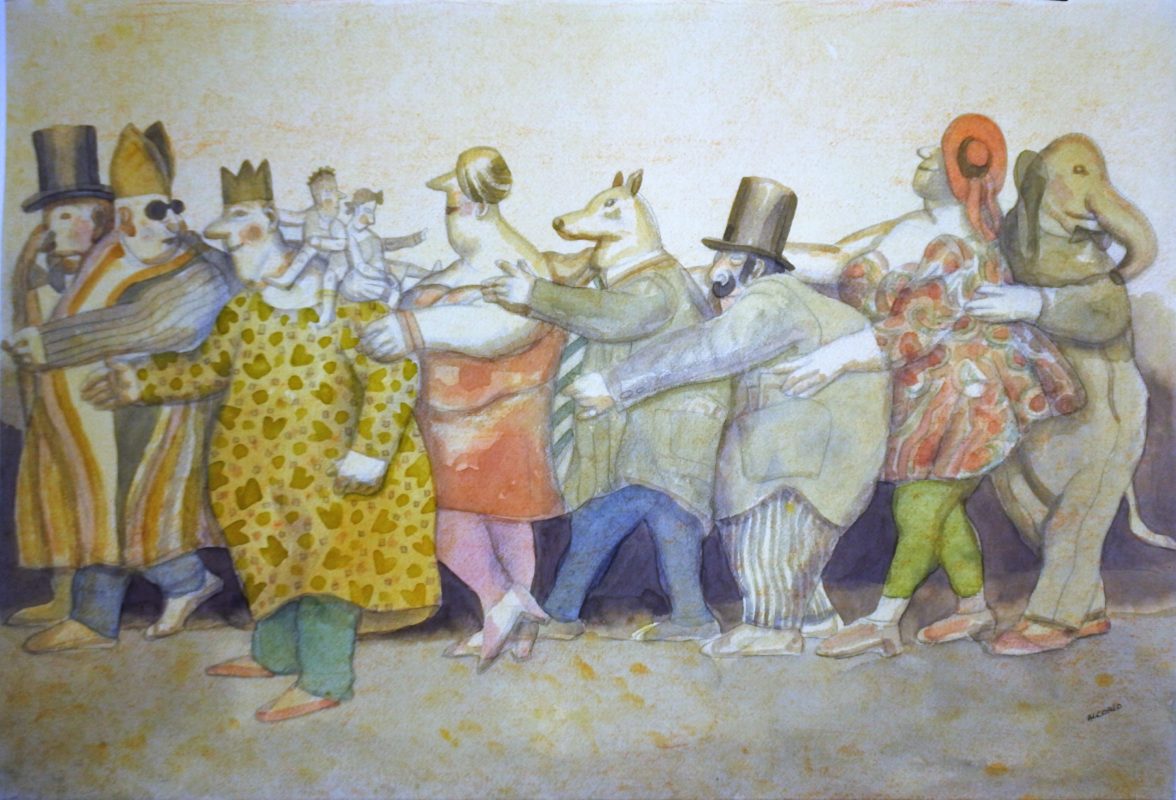 Manuel Alcorlo, Desfile de autoridades, dibujo tinta y acuarela cartulina, enmarcado, dibujo 38×56 cms. y marco 74×49 cms.