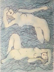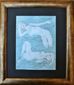 Manuel Alcorlo, Desnudas sobre las olas, dibujo técnica mixta papel, enmarcado, dibujo 28×21 cms. y marco 45,50×39,50 cms.