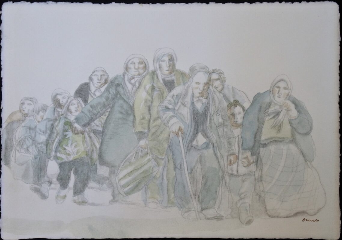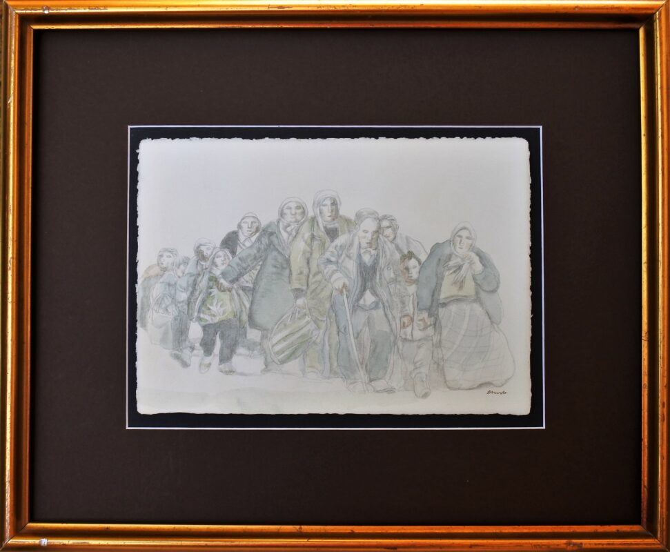 Manuel Alcorlo, Desplazados sin rumbo, dibujo lápiz papel artesanal, enmarcado, dibujo 21×30 cms. y marco 43×51,50 cms.