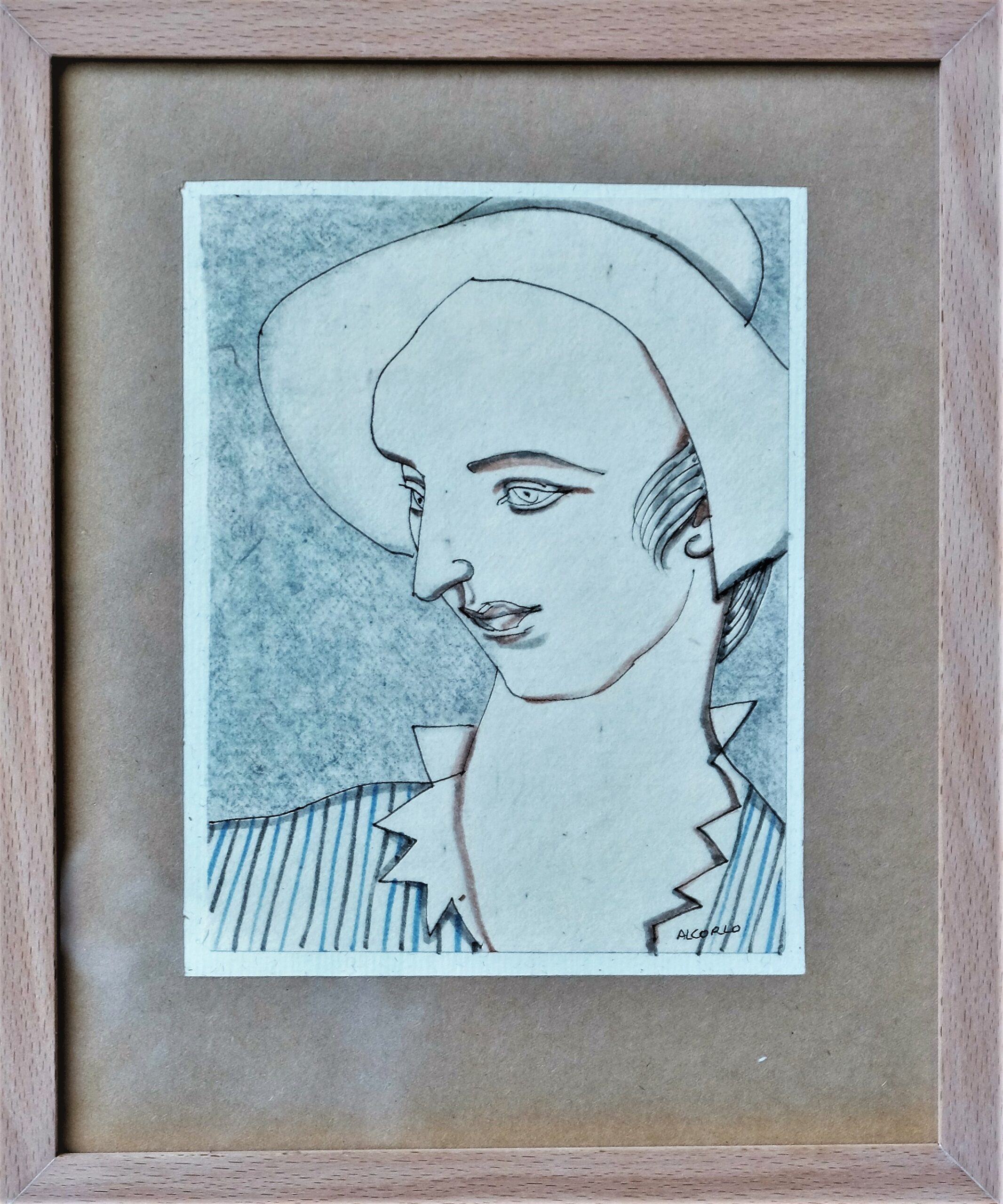 Manuel Alcorlo, Eloisa tiene prisa, dibujo original técnica mixta cartulina, enmarcado, dibujo 16,50×12,50 cms. y marco 27×22 cms.