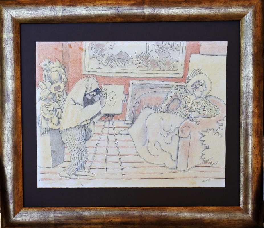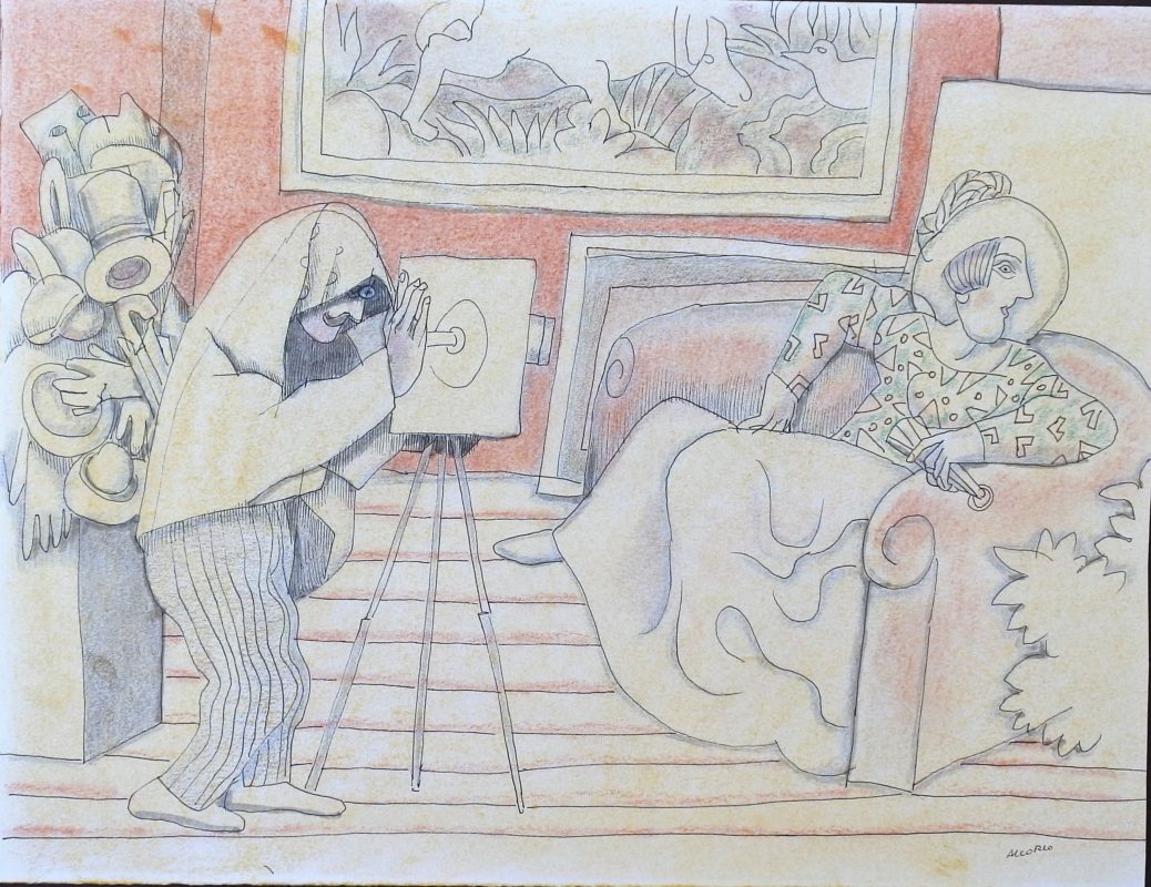 Manuel Alcorlo, Fotógrafo de época II, dibujo técnica mixta papel, enmarcado, dibujo 25×32,50 cms. y marco 39,50×45,50 cms.