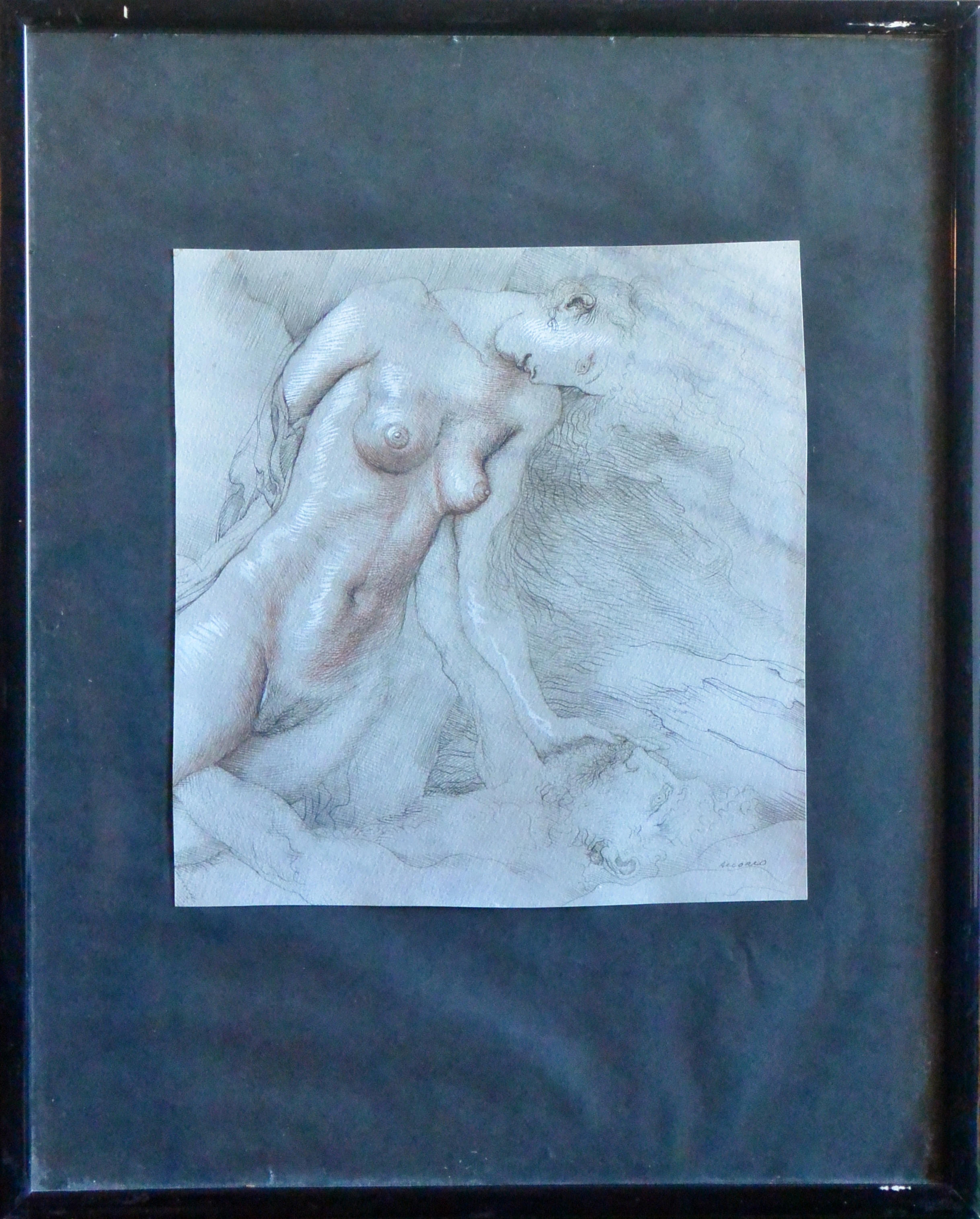 Manuel Alcorlo, Momento erótico, dibujo lápiz cartulina, enmarcado, dibujo 28×27 cms. y marco 52×42 cms.