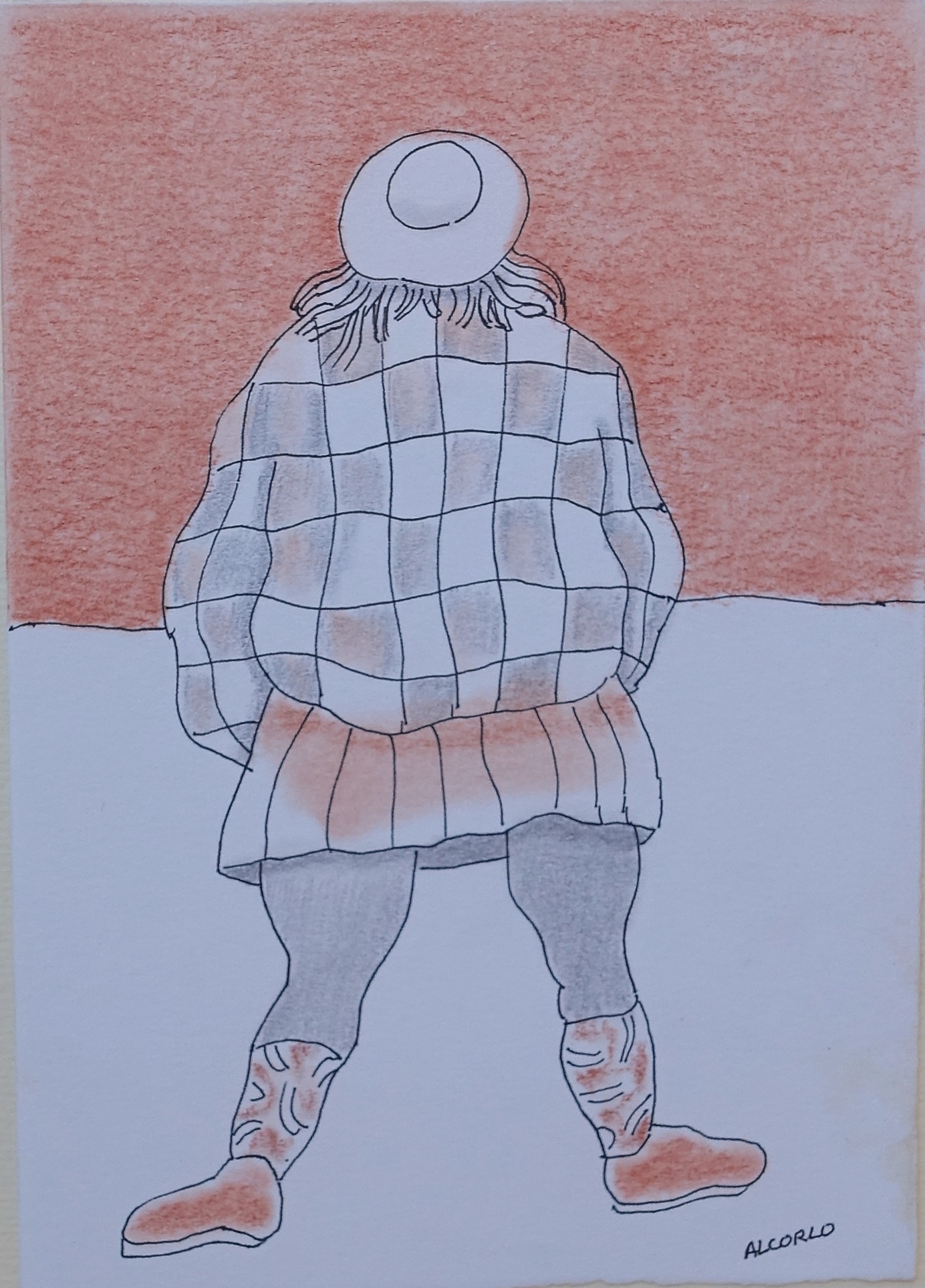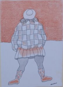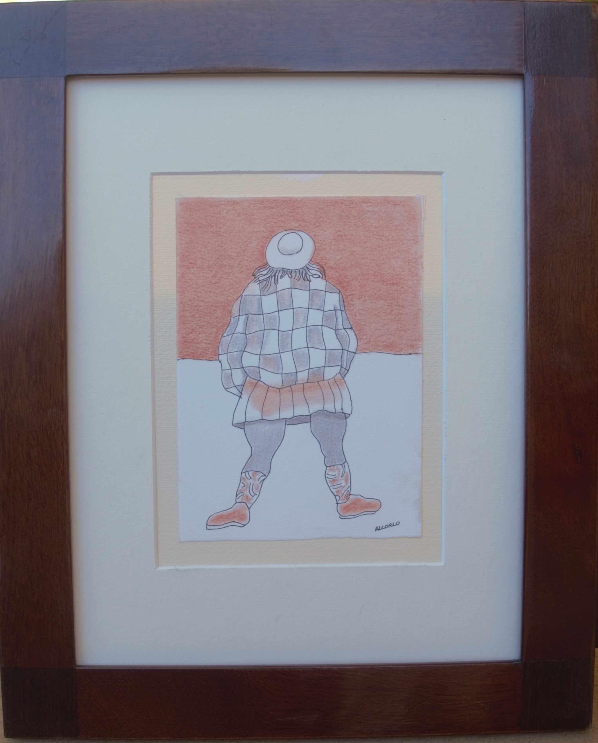 Manuel Alcorlo, Mujer joven de espaldas, dibujo original lápiz y acuarela sobre cartulina, enmarcado, dibujo 17,50×12,50 cms. y marco 38×31 cms.