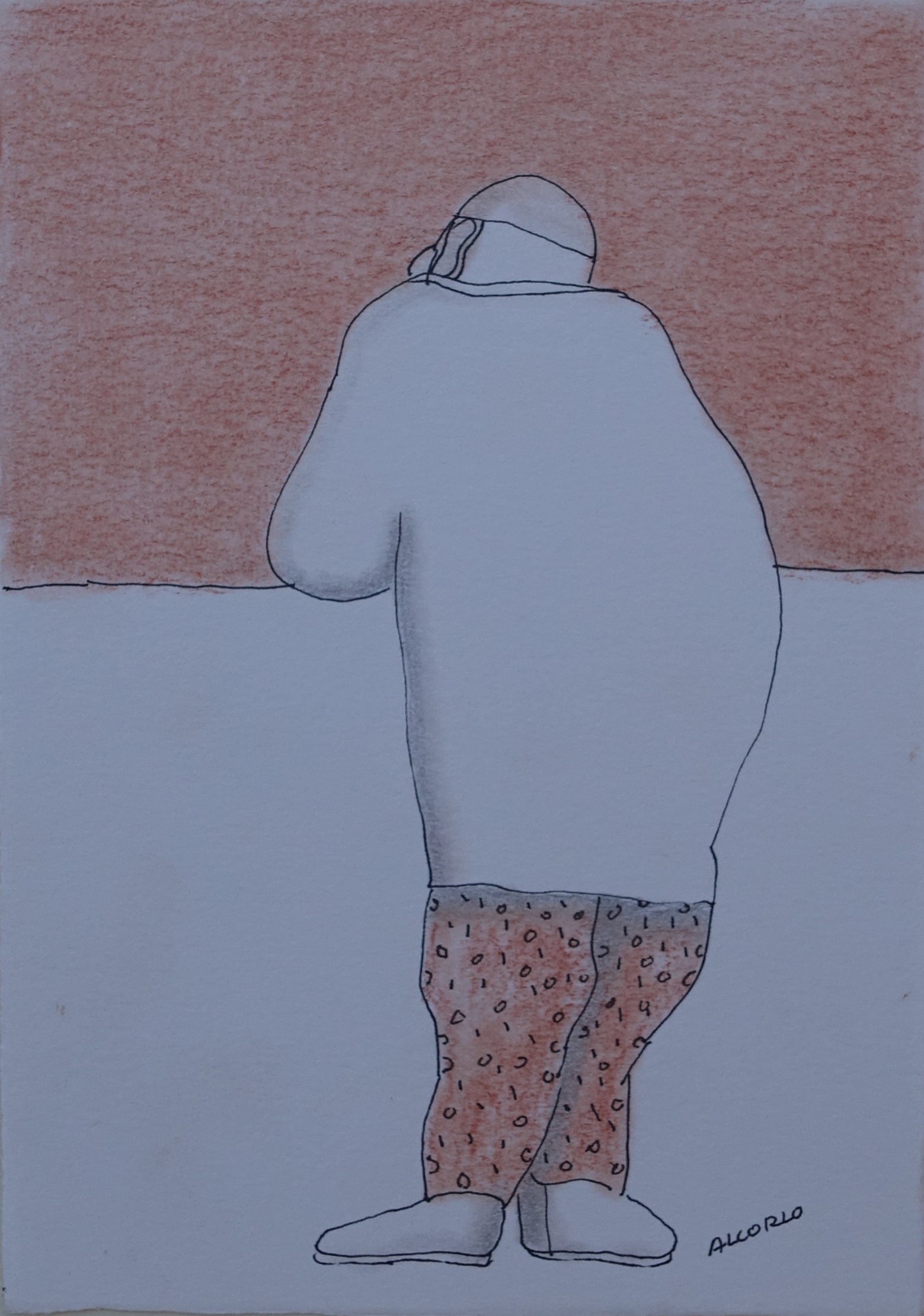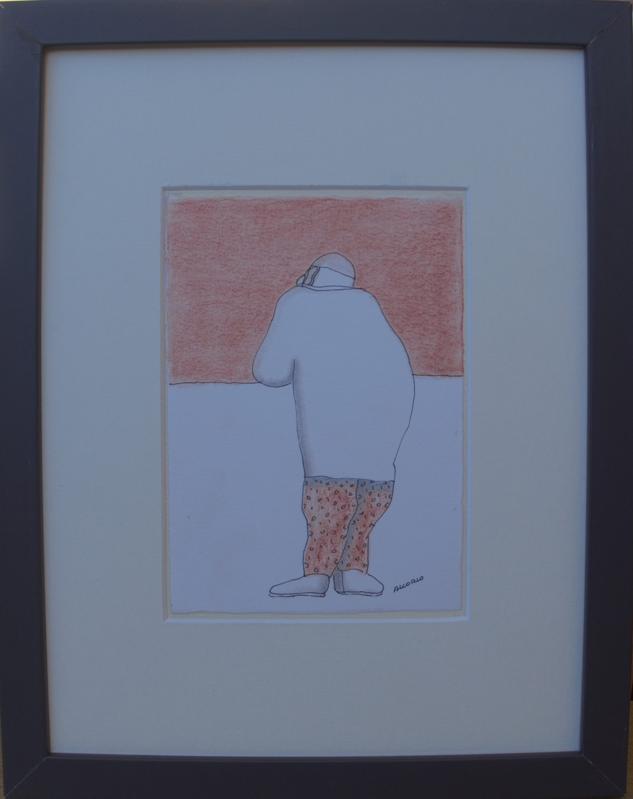Manuel Alcorlo, Al otro lado, dibujo original lápiz y acuarela sobre cartulina, enmarcado, dibujo 18×13 cms. y marco 27×22 cms.